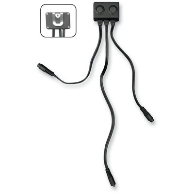 - Connects between battery cord and heated clothing for dual-output on/off selection (e.g. controls jacket and gloves separately).