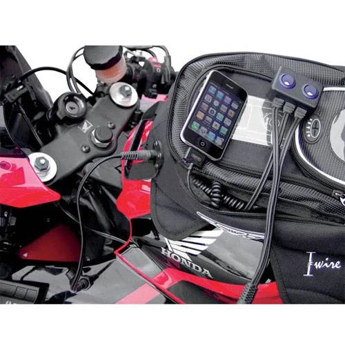 - Help to provide power inside your Tank Bag, Saddle Bag or Tail Bag (hard or soft shell of 5mm maximum thickness).