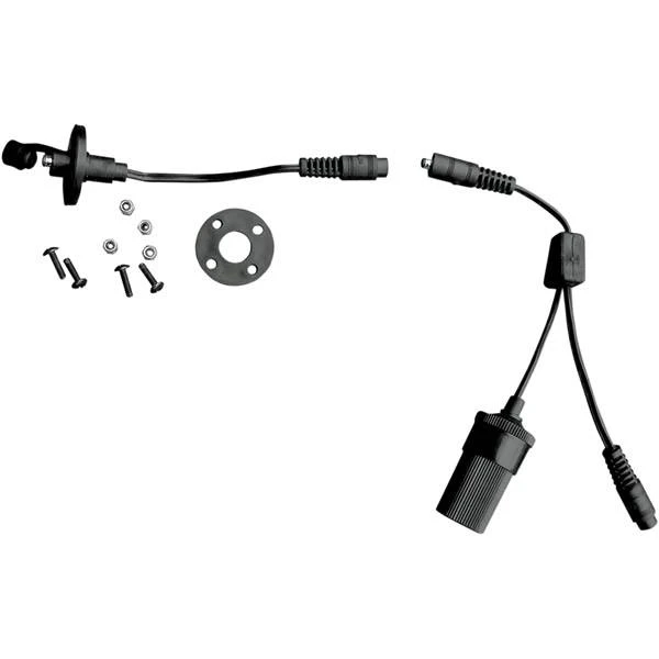 - Luggage Power Connector Pak 1 – interior has a 5″ long cable with female coax plug which can be hooked up to the Gears 1-into-2 male coax (included), which has a car size female cigar plug on the other end for powering your devices like GPS, and an additional female coax plug output for connecting Gears heated clothing or Gears panel mount cable to throw power out from your luggage.