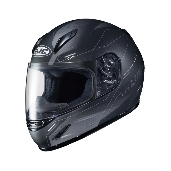 HJC has created a true youth helmet with the CL-Y. The youth size polycarbonate shell provides a lightweight helmet, with superior fit and comfort using advanced CAD technology. An integrated ventilation system enhances cooling airflow. The large eye port design allows for maximum visibility and hosts a flash-mounted shield ratchet system that is simple and easy to use when changing the shield.