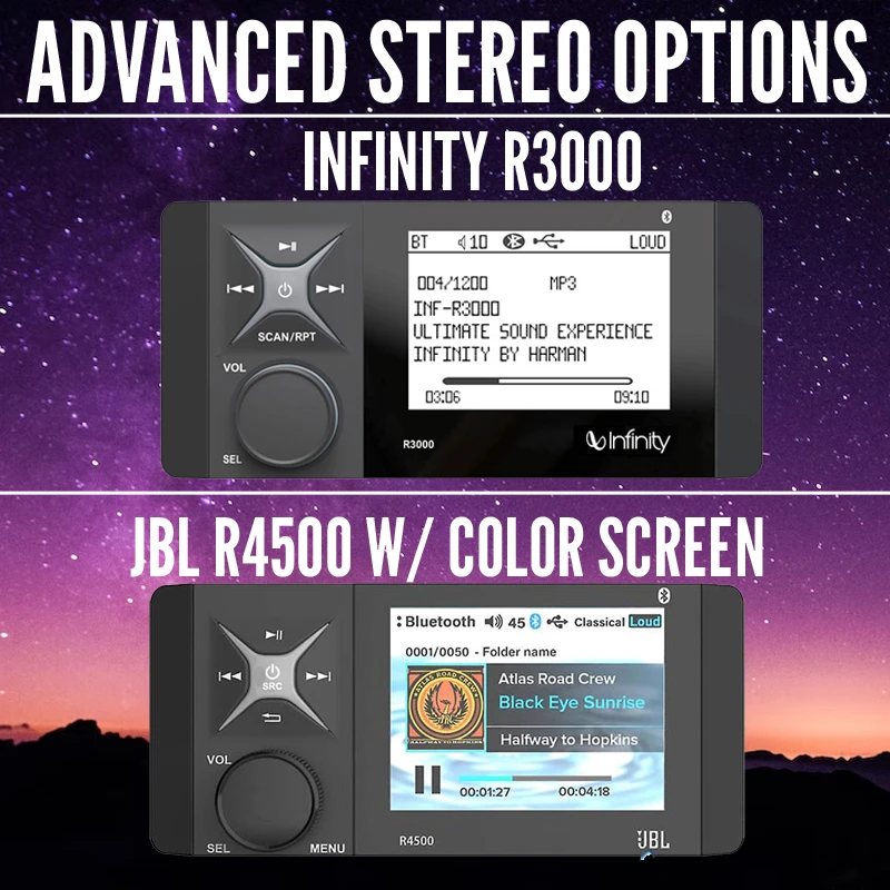 The 6.5″ Rockford Fosgate speakers are perfect for the rider looking to get great levels of sound without breaking the bank. Experience the signature VAST surround technique to expand the surface area of the speaker cone, giving you better bass response than comparable speakers. But no matter how heavy the bass gets, the P1650’s dome tweeter provides clear, extended highs for a rich full-range sound.