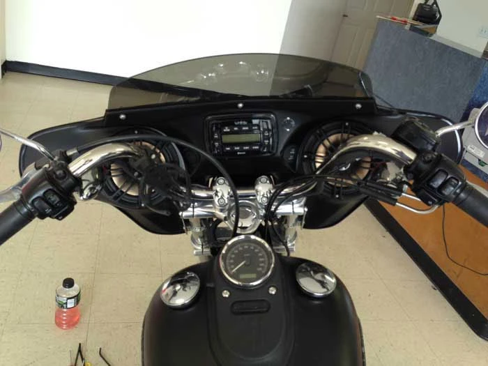 The Reckless Batwing fairing is offered with an optional Rockford Fosgate PBR400X4D amplifier to further enhance your listening experience. This amplifier is a full range 4-channel amplifier that is compact enough to come pre-installed inside of the fairing, but packs a punch with 400 Watts RMS power. The amplifier is recommended for riders who are often cruising at highway speeds with passengers or loud, aftermarket exhausts. Or, for those who are after a more powerful stereo system.Â