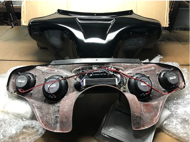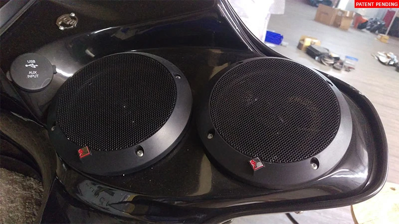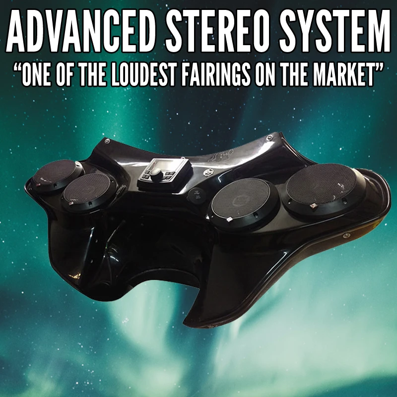 A combination of Rockford Fosgate speakers featuring 2 x 6.5″ speakers on the outsides of the fairing, and 2 x 5.25″ speakers on the inside. This pairing features a combination of rich bass from the 6.5″ speakers as well as crisp highs provided by the 5.25″ speakers. The ultimate speaker pairing for some of the highest levels of sound in any batwing fairing.