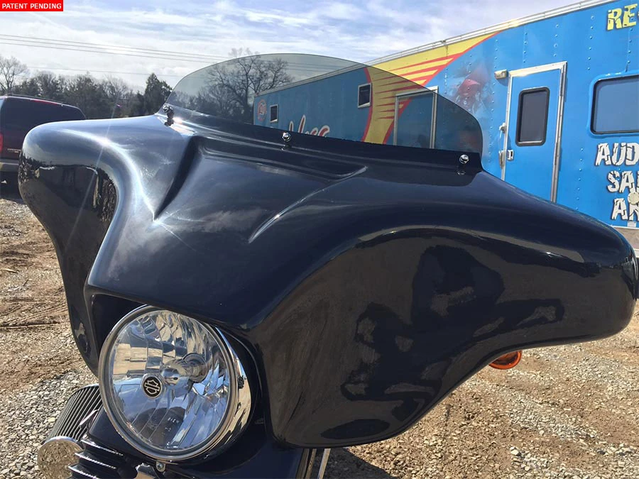 Windshields are offered in a clear or tinted finish in 5″ or 10″. The average rider will look over the 5″ windshield, and through the 10″ windshield. Various windshield sizes can be used on the fairing by easily removing the windshield from the fairing and replacing it with a new windshield. Windshields can be ordered separately to ensure the possibility of having any size or color. Taller windshields will provide riders with more protection from the wind, while shorter windshields provide a more sleek look to the motorcycle.