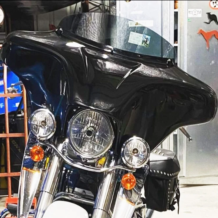 Windshields are offered in a clear or tinted finish in 5″ or 10″. The average rider will look over the 5″ windshield, and through the 10″ windshield. Various windshield sizes can be used on the fairing by easily removing the windshield from the fairing and replacing it with a new windshield. Windshields can be ordered separately to ensure the possibility of having any size or color. Taller windshields will provide riders with more protection from the wind, while shorter windshields provide a more sleek look to the motorcycle.