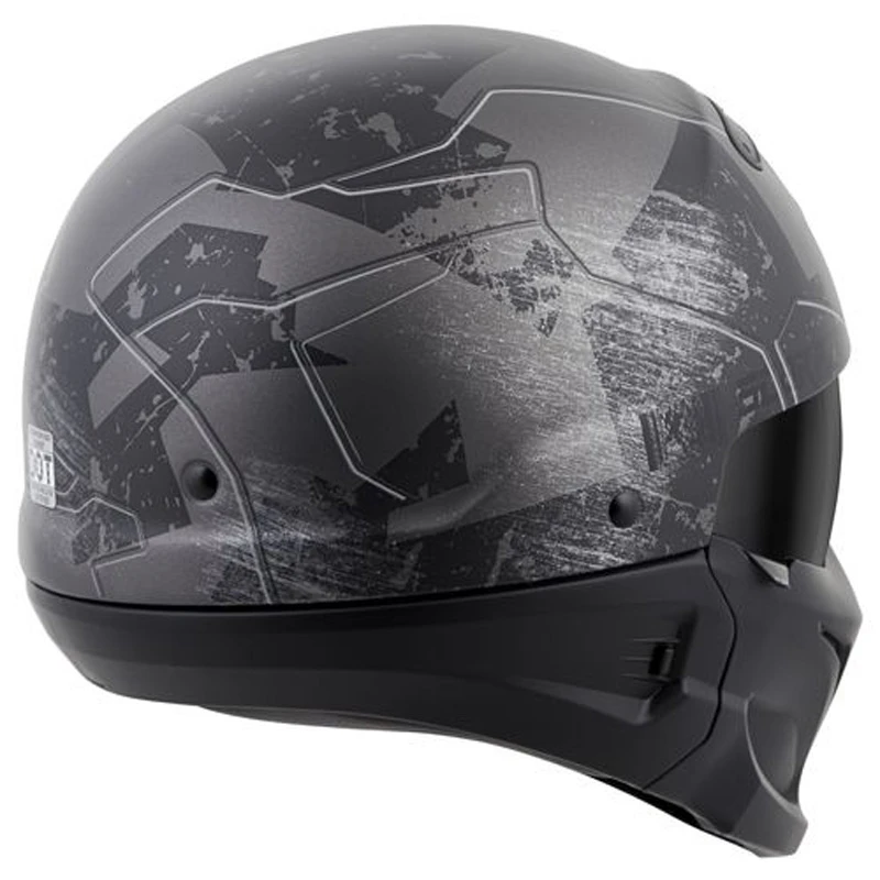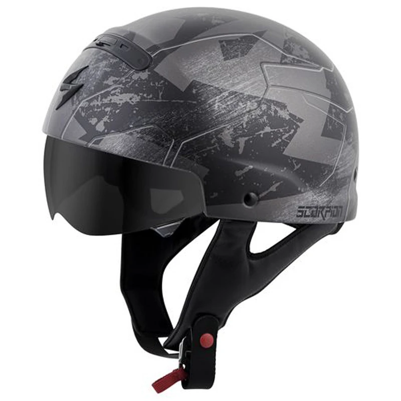 Scorpion adds a whole lot of “but wait, there’s more” to the classic half shell. First they start off strong with a tune-able ventilation system. Next they mix in a no-frills drop down sun visor system. One pull on a tab lowers the shades then pushing the same tab retracts them; it couldn’t be easier. Snapping in a rear bottom sleeve transforms your lid into a 3/4 helmet and helps to muffle some of the cries from your lives-saving exhaust. Despite the extra coverage, Scorpion’s Kwikwick liner keeps your head in the game by channeling heat and humidity up to the ventilation ducts to be piped out the back. You’ll be cool as a cucumber. But wait, there’s more. Attaching the front mask shields your pretty face from bugs, and you-name-it debris as you’re blasting down the interstate. If you’re one who frequently needs to transition from being seen to only heard, the Scorpion Covert is there for missions ranging from the twisties to the impossible.