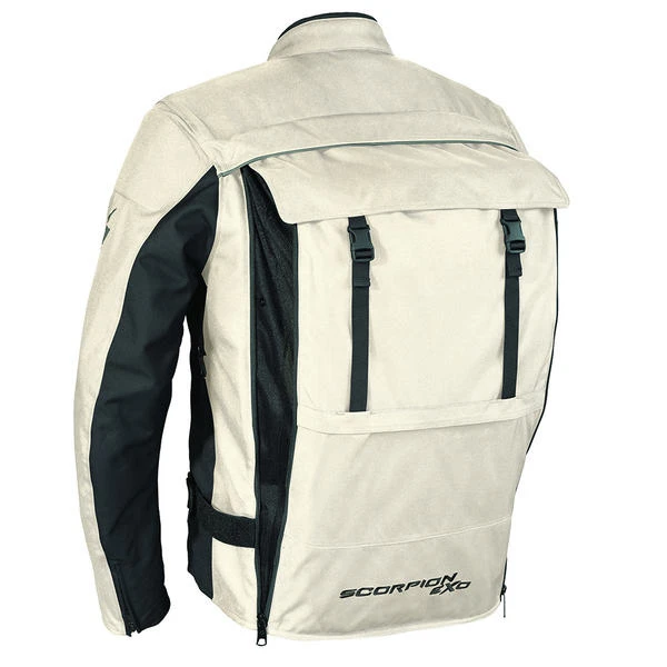 The patent pending StealthPack Jacket by Scorpion EXO. Clean, streamline styling with a surprising little secret, a hidden backpack so subtly integrated you wouldn�t even know it was there. Ideal for the daily commute, week-end errands, or a long destination ride. Fully adjustable and extremely versatile, the integrated backpack sides also double as the industries largest heat exhaust vents, providing superior ventilation working in unison with the front intake vents. Say goodbye to your lopsided, shoulder straining backpack and hello to the StealthPack.