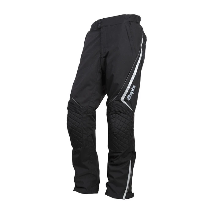 The matching pants to the Zion Jacket. Patterned specifically for the female form for proper fit. Constructed of 500 denier nylon with double layers at the knees for extra strength. Sas-Tec® CE certified armor at knees. PE foam in hip pockets can be replaced with Sas-Tec CE certified armor for extra protection. NightViz® reflective material on thighs and ankles for nighttime visibility. Accordion stretch gussets at rear waist and knees help the garment fit and move with you. Large vents on the thighs help keep you cool when temperatures rise. Removable EverHeat® thermal liner for colder temperatures as well as a removable Airguard® liner for when it’s cold and rainy make these a very versatile pair of riding pants.