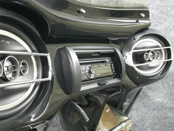 Road King Custom 94-Up: The chrome wind deflector and the chrome trim strip on top of the nacelle must be removed and replaced with the Road King Standard style handlebar mount cover and chrome nacelle top chrome strip. Also requires relocation of stock turn signals.