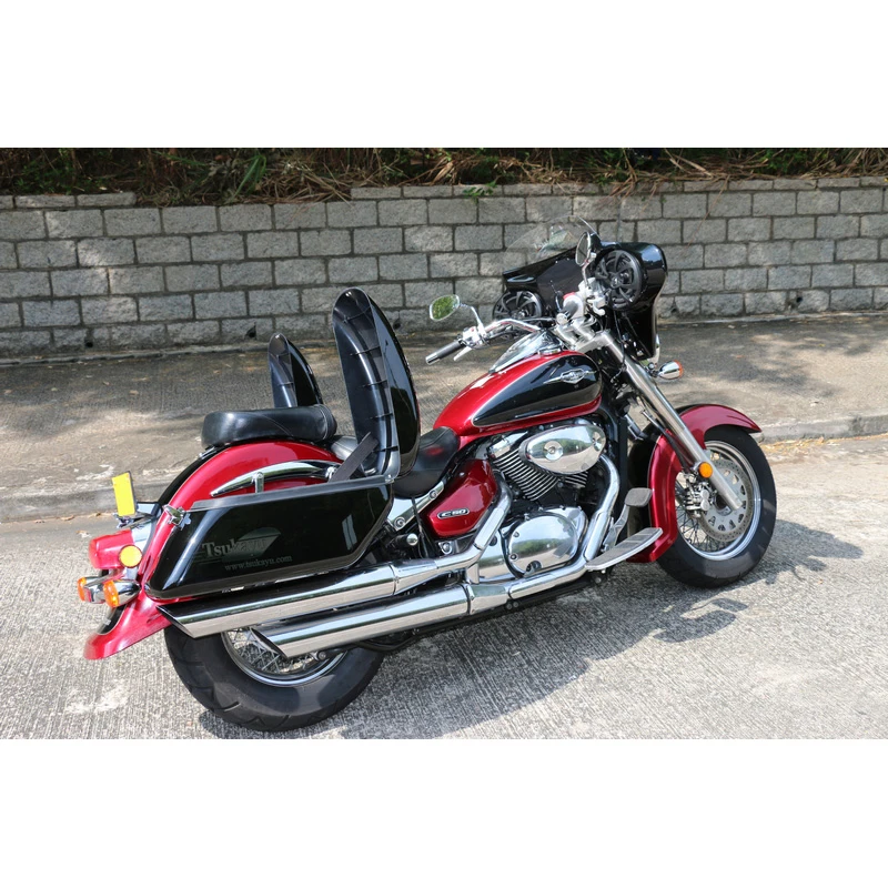 Short Strong Hard Saddlebags easily fit on most Cruisers and Touring Motorcycles (including Harley-Davidson, Victory, Triumph, Honda, Yamaha, Kawasaki, Suzuki and more). They are preferred for bikes with double pipes on one side like Roadstar, Vstar, etc, and perfectly follow the contour of your motorcycle fender. They are the best choice for customizing your ride with quality Hardbags at affordable prices. 21 Liters of Storage Capacity for each side of Hardbags, Come Carpet Lined, upgraded latches, lockable, and all Mounting Hardware you needed for installation.