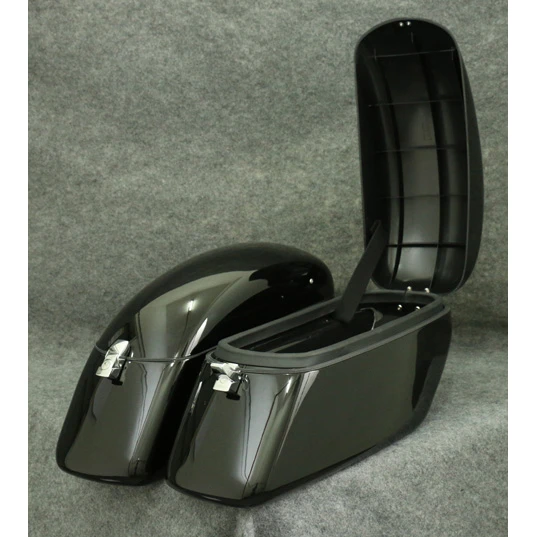 Short Strong Hard Saddlebags easily fit on most Cruisers and Touring Motorcycles (including Harley-Davidson, Victory, Triumph, Honda, Yamaha, Kawasaki, Suzuki and more). They are preferred for bikes with double pipes on one side like Roadstar, Vstar, etc, and perfectly follow the contour of your motorcycle fender. They are the best choice for customizing your ride with quality Hardbags at affordable prices. 21 Liters of Storage Capacity for each side of Hardbags, Come Carpet Lined, upgraded latches, lockable, and all Mounting Hardware you needed for installation.
